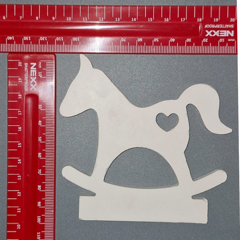 Rocking Horse Large Figurine in Plaster of Paris: +/- 100 mm Wide, 110 mm Long, 25 mm High. Weight: 50 g